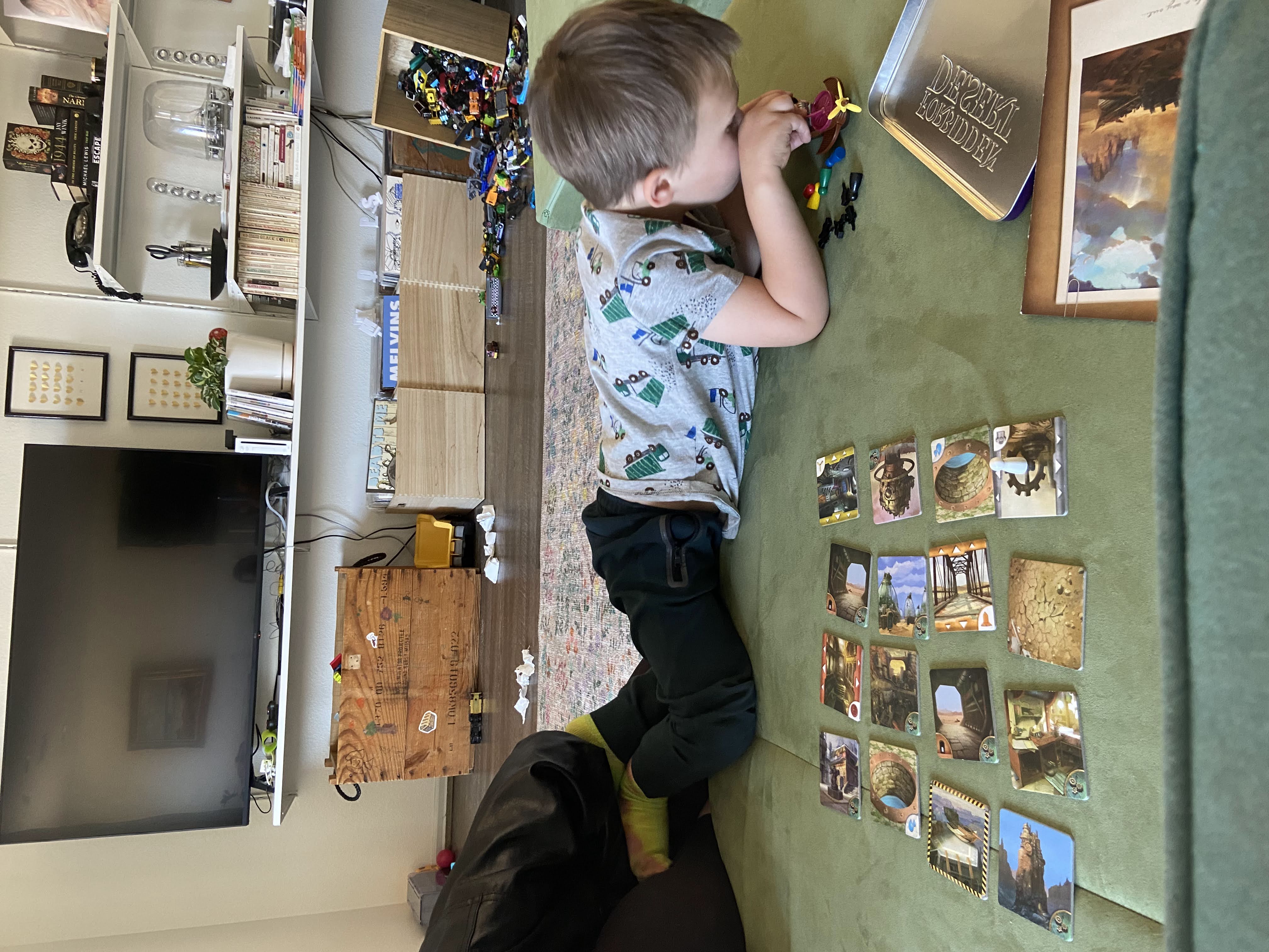 He also likes “playing” board games. We just make up some silly rules and he quickly gets tired of it, but also keeps requesting to do it.