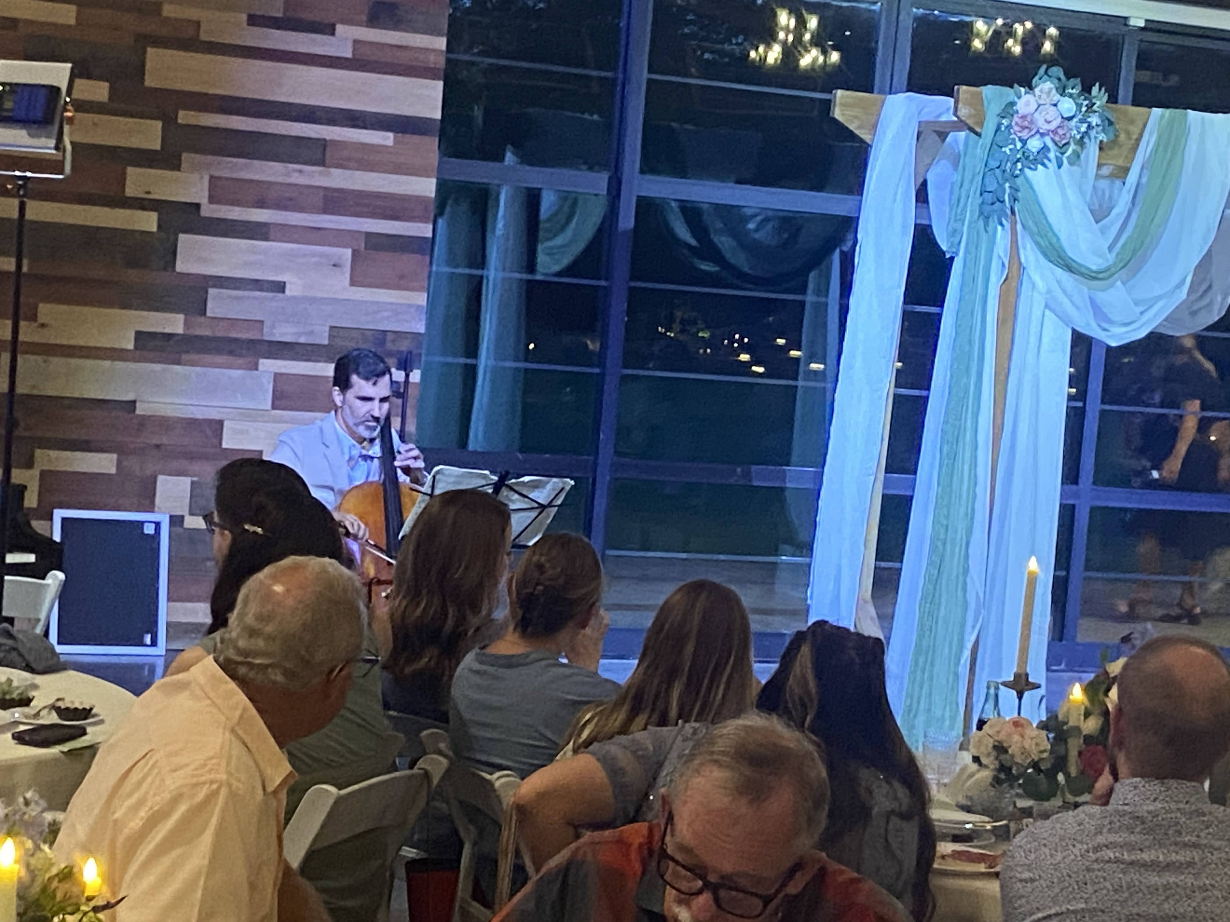There was a reception afterward, and as far as receptions go it was a reception. Nathan played a song (Taylor Swift??) on ye olde cello.