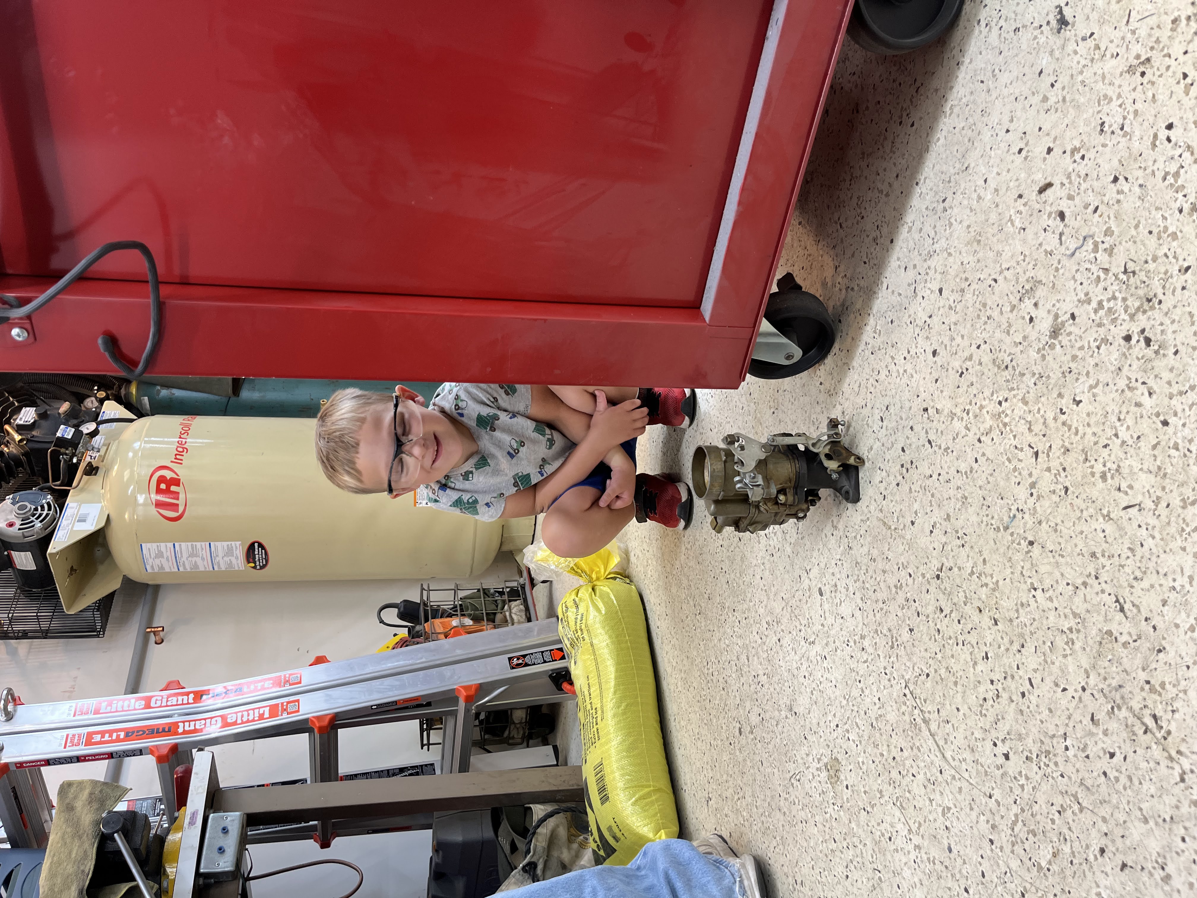 While Calvin was in Utah, he had direct access to his grandpa who knows a lot about his favorite thing in the world, and he was able to frequently help out in the garage.